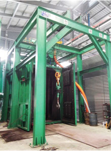 ¿ÏÀü ¹ÐÆóÇüÀ¸·Î SHOT ÀÔÀÚÀÇ ¿ÜºÎ ºñ»êÀÌ ÀüÇô ¾ø°í 2°³ÀÇ JIG¿¡ ÇÇÁ¦Ã»¹°À» ÀåÂøÇϱ⠶§¹®¿¡ ±â°èÀÇ È޽ð£À» ÃÖ¼ÒÈ ÇÒ ¼ö ÀÖ¾î Ÿ±â°èº¸´Ù ¼ö¹èÀÇ ÀÛ¾÷È¿À²À» ³ôÀÏ ¼ö ÀÖ´Ù. ¸ðµç Á¦Ã»¹°À» ±ÕµîÇÏ°Ô BLASTING ÇÒ ¼ö ÀÖ´Â ¹ü¿ë±â°è·Î ¼ö¸íÀÌ ¹Ý¿µ±¸ÀûÀ̸ç Á¶ÀÛ, Á¡°ËÀÌ °£´ÜÇϰí Ä¡Á¦Ã»¹°ÀÇ Àå/Å»ÂøÀÌ ½±´Ù.