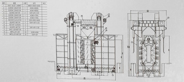 ¿©·¯°³ÀÇ HANGER°¡ Æ®·ÎÀÌ Äܺ£¾î¿¡ ÀÇÇÏ¿© ÀÌ¼Û °¡°øµÇ¸ç ´É·üÀÇ ±Ø´ëȸ¦ À§ÇØ »ý»ê¶óÀΰú Á÷Á¢ ¿¬¼ÓÀÛ¾÷ÀÌ ÀÌ·ç¾îÁö´Â SHOT BLAST M/C·Î½á ÀÚµ¿È LNE SHOT BLAST M/CÀÌ´Ù.